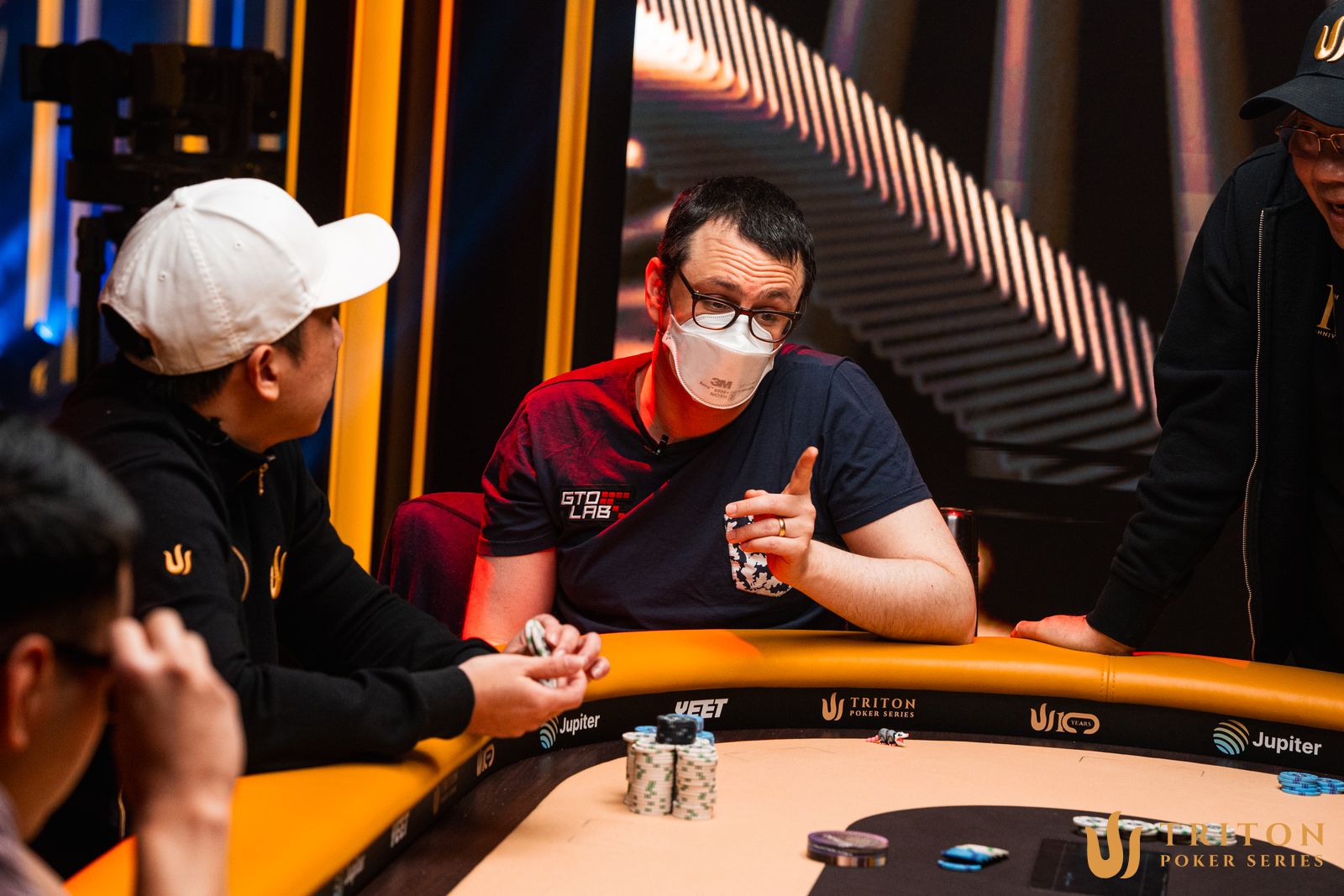 The smallest buy-in PLO event got started as the highest, the Main Event, was funnelling towards its final. It meant that for long periods, the 53-entry field played on outer tables in the gradually-emptying Triton Poker Series tournament room. What had once bustled with the hordes of Triton ONE was now more of an exclusive club for the four-card studs.