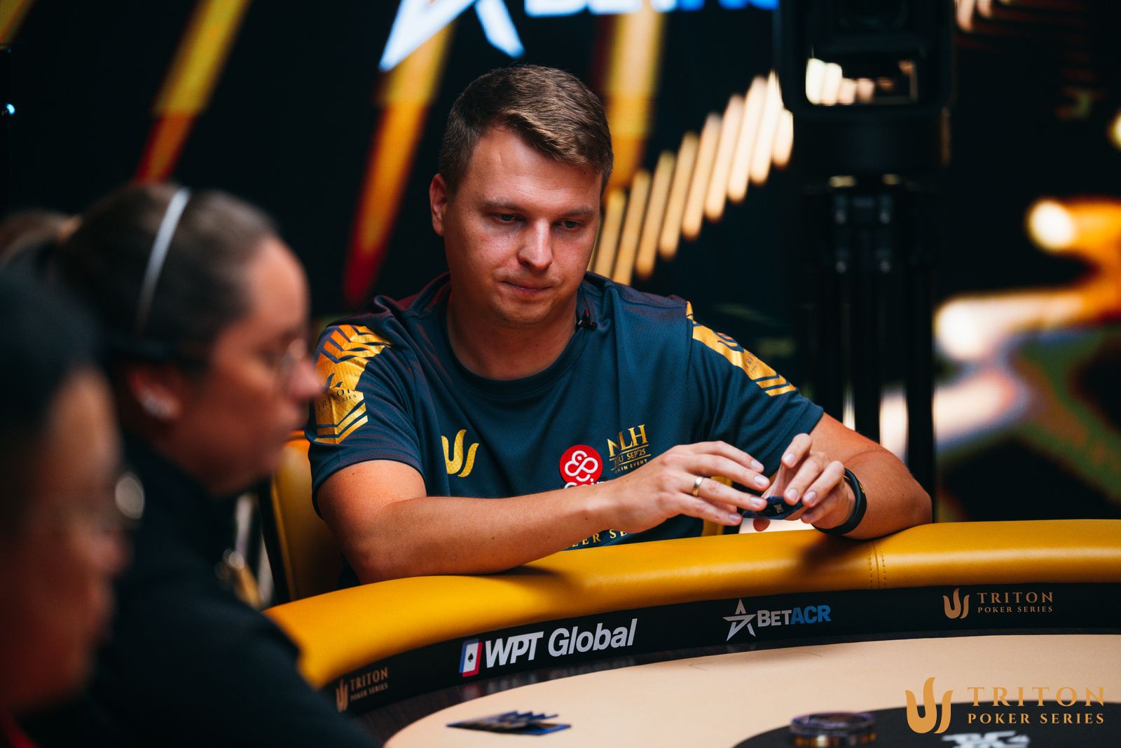 Xu was the shortest stack, followed by Mullur. But it ended up being the man most familiar to final tables on the Triton Series who tumbled out the door next. Aleks Ponakovs had rarely seemed threatened at any point during this three-day tournament, building a healthy stack on Day 1 and staying among the leaders throughout.