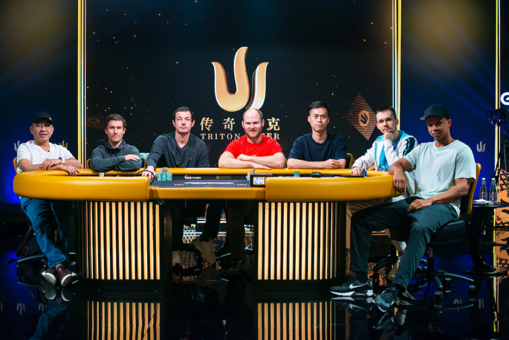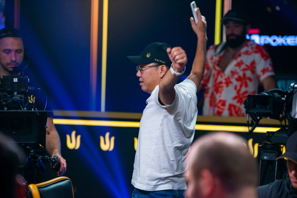 We have seen some hero-to-zero nosedives before on the Triton Series. Just yesterday, Wiktor Malinowski somehow finished third in the hold’em Main Event when he had about half the chips in play three-handed. But Dwan’s dip was precipitous: he doubled up Ivey, then Lee in consecutive hands, and then Ivey again in what proved to be terminal. (Ivey won a race with AK to Dwan’s pocket jacks.) He was left with crumbs, which Ivey took as well.