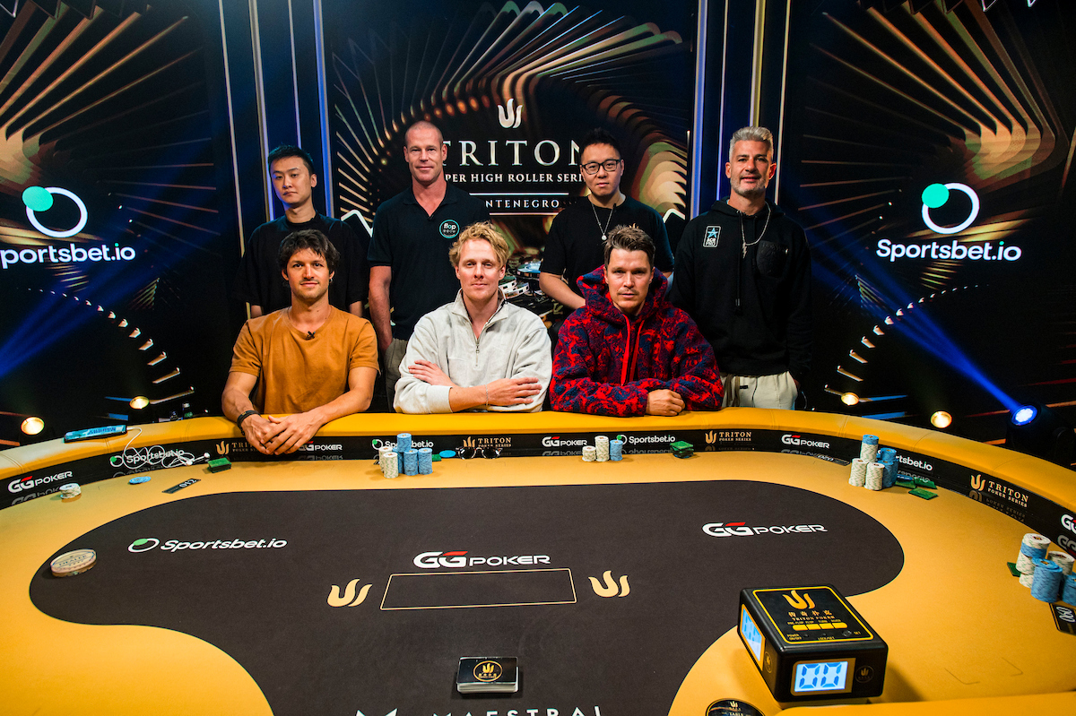 Triton Montenegro Event 15 final table players (clockwise from back left): Biao Ding, Patrik Antonius, Danny Tang, Nacho Barbero, Eelis Parssinen, Samuli Sipila, Alex Komaromi.