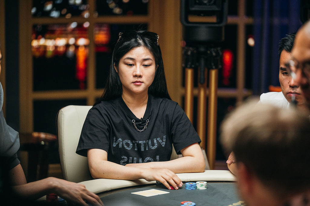 With Chen posting a $4,000 straddle and Elton Tsang posting a double straddle of $8,000 there was plenty in the middle before anyone volunteered anything else. It actually folded all the way around to Chen, who raised it up to $24,000. The contents of Chen’s hand was known only to her at this point. She was playing the “Mystery Hand”, which meant it was hidden even to viewers of the stream.